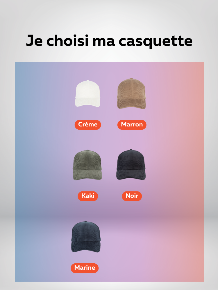 Choisissez la couleur de votre casquette, celle de votre logo recevez votre casquette Roundnet directement chez vous !